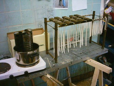 Vorbereitetes Gestell zum Kerzen ziehen mit Kerzenrohlingen